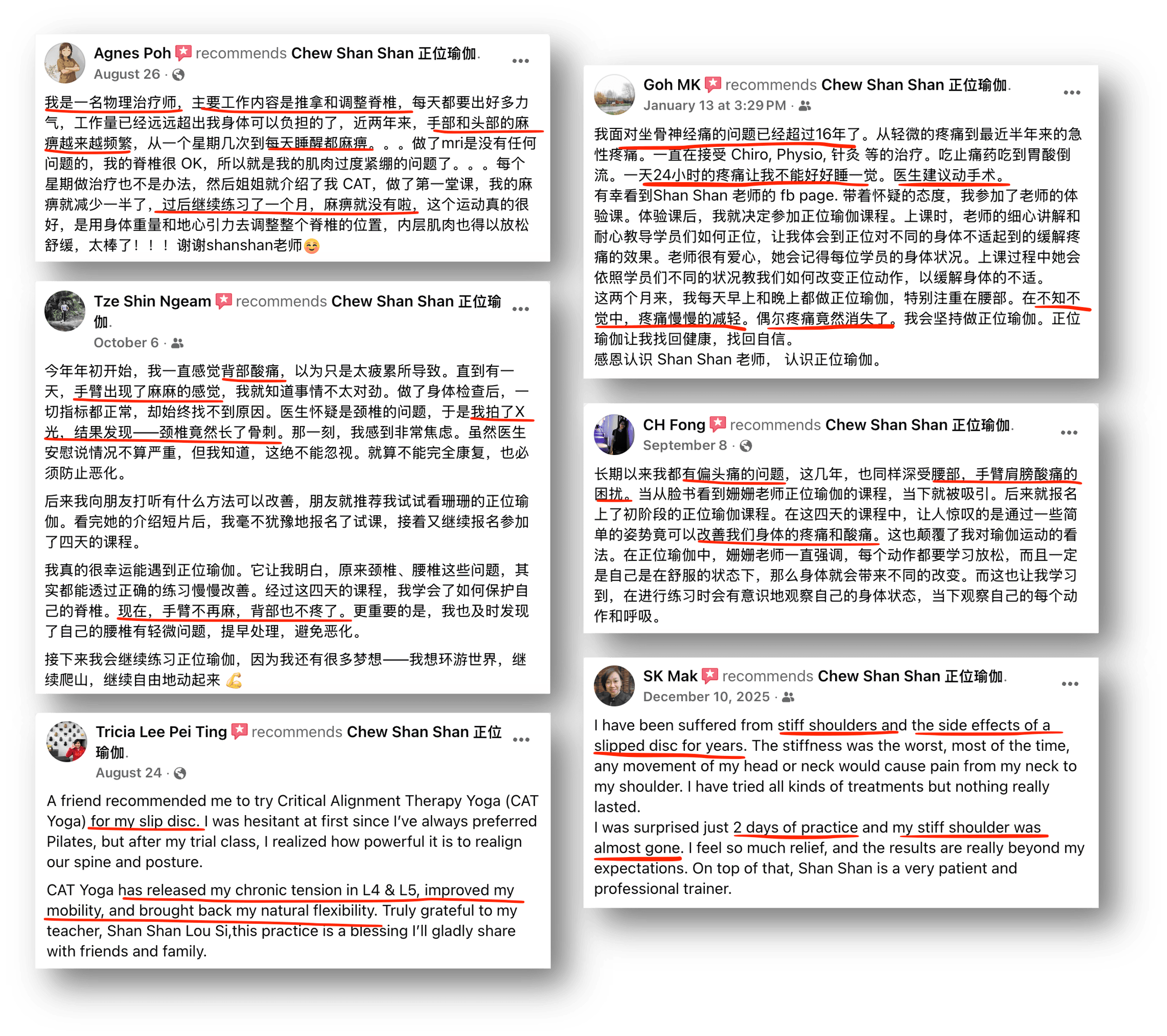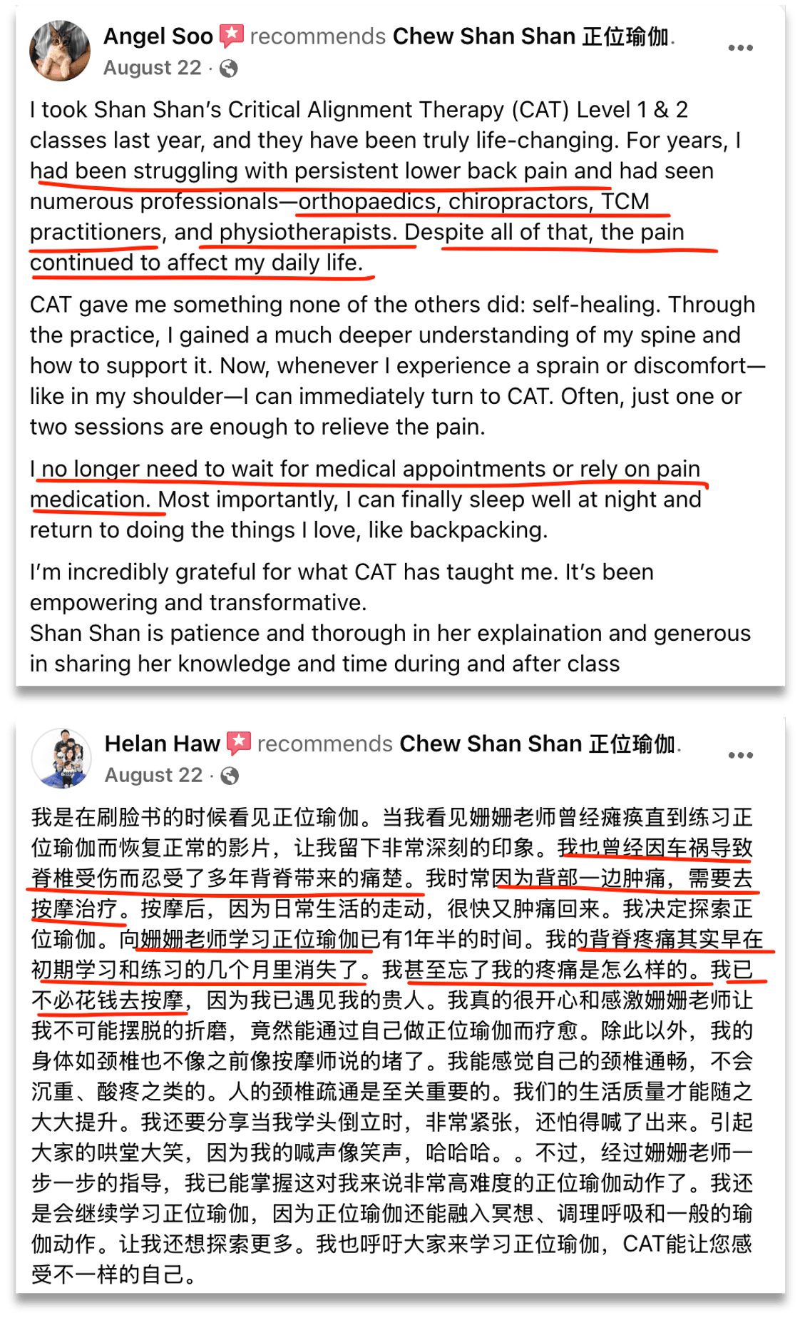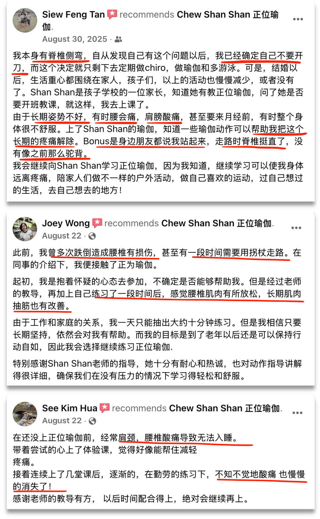 I help students fix real issues every day—from stiff necks, frozen shoulders, and hunchbacked to more serious pain like Scoliosis, Slip Discs, and Sciatica. Many come to me to resolve chronic headaches, Insomnia, or a "Buffalo Hump". I also work with moms dealing with "mommy thumb" and runners struggling with knee or heel pain.