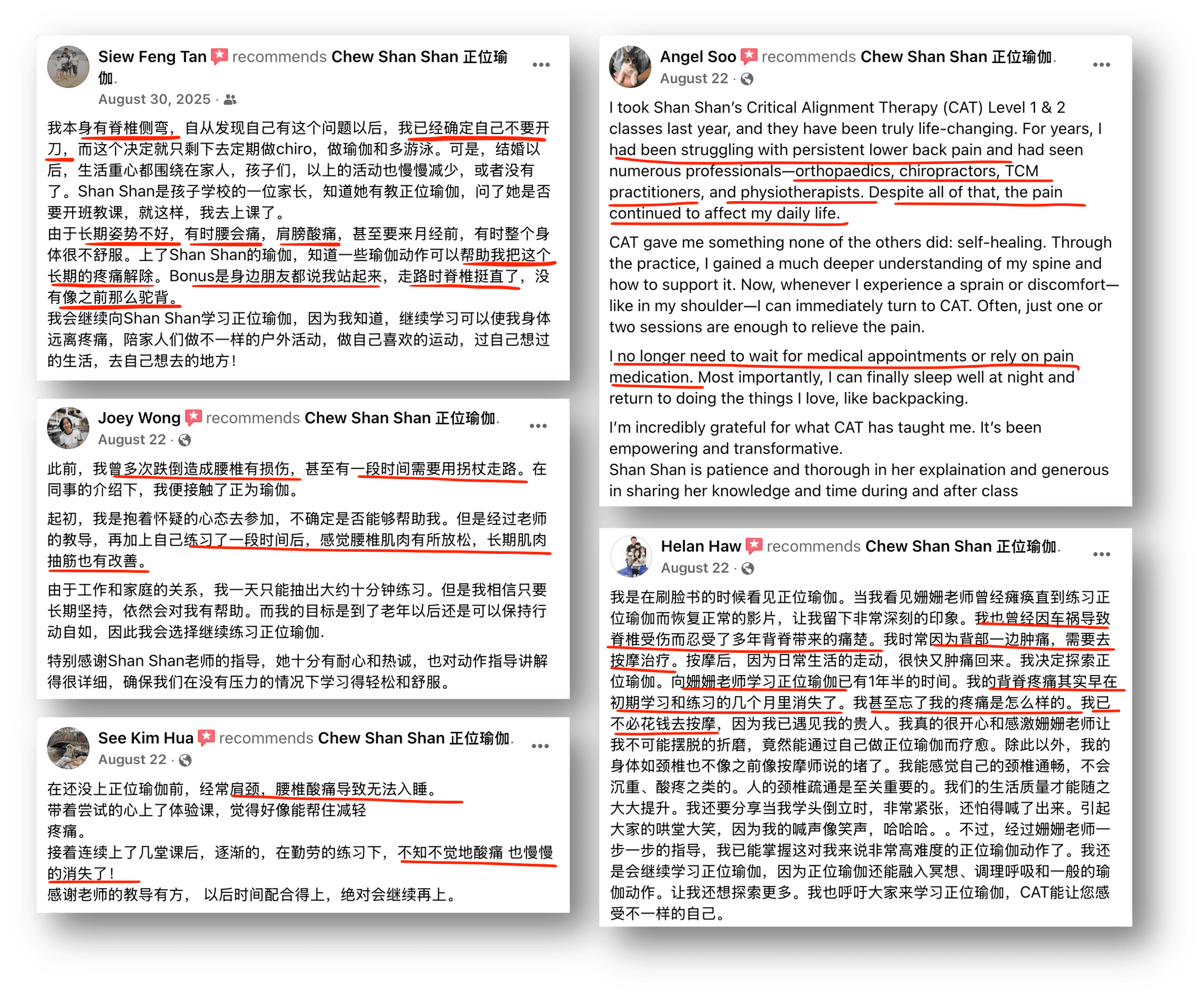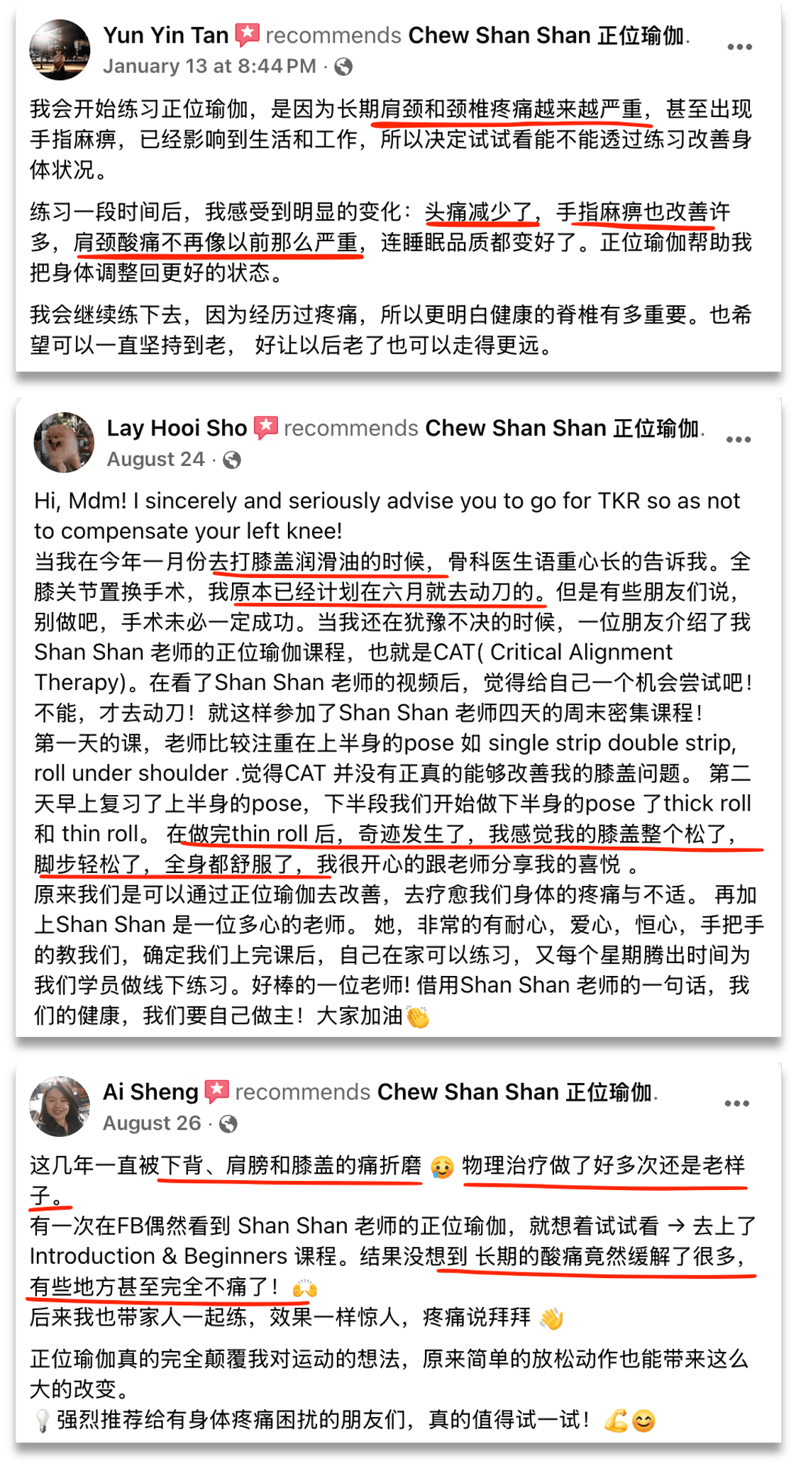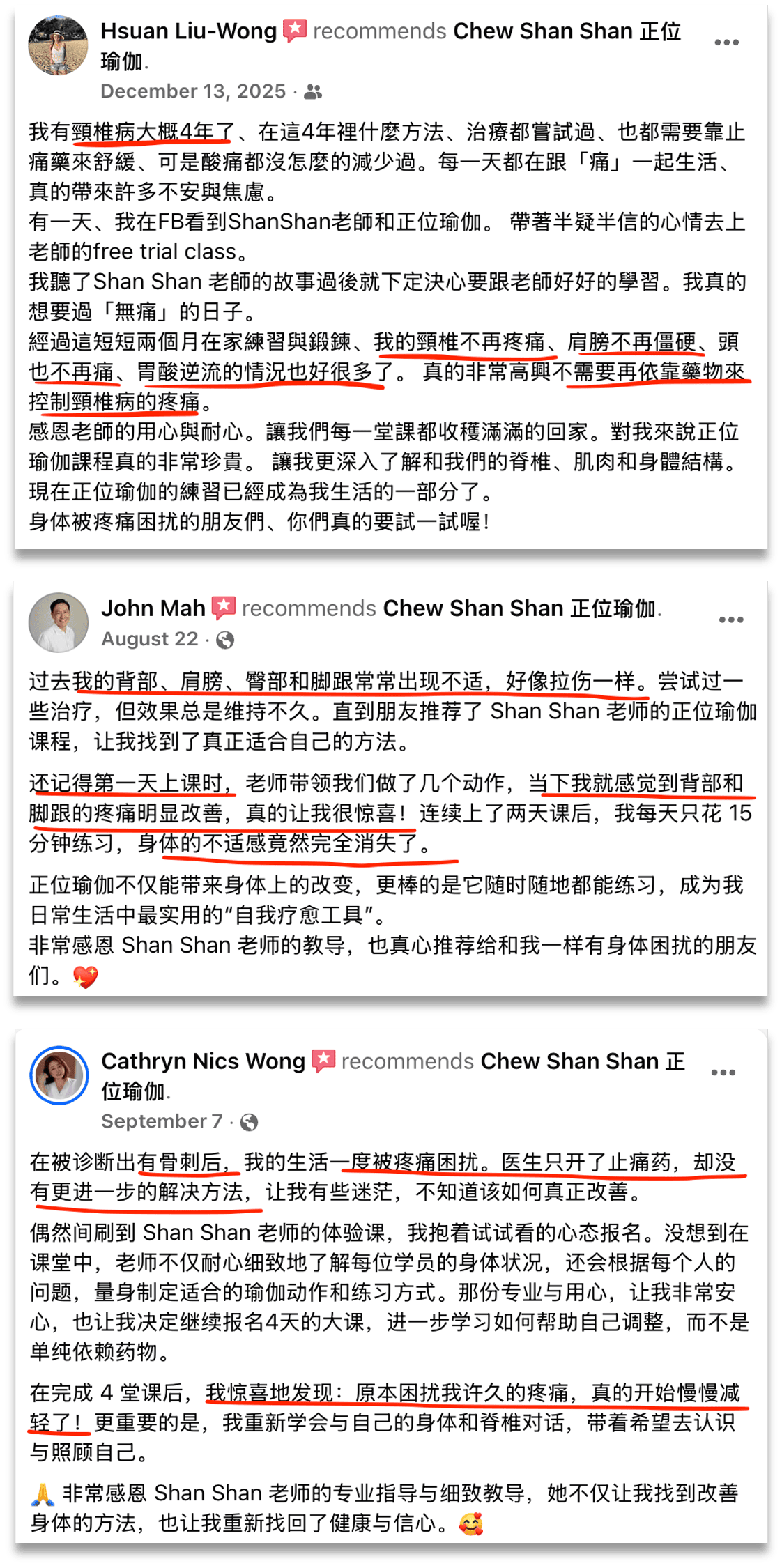 I help students fix real issues every day—from stiff necks, frozen shoulders, and hunchbacked to more serious pain like Scoliosis, Slip Discs, and Sciatica. Many come to me to resolve chronic headaches, Insomnia, or a "Buffalo Hump". I also work with moms dealing with "mommy thumb" and runners struggling with knee or heel pain.